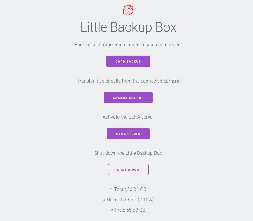 Little Backup Box is a part of a streamlined and automated Linux-based photographic workflow described in the [Linux Photography](https://gumroad.com/l/linux-photography) book. The book provides step-by-step instructions on building a Raspberry Pi-based photo backup device running the Little Backup Box script. Get your copy at [Google Play Store](https://play.google.com/store/books/details/Dmitri_Popov_Linux_Photography?id=cO70CwAAQBAJ) or [Gumroad](https://gumroad.com/l/linux-photography).